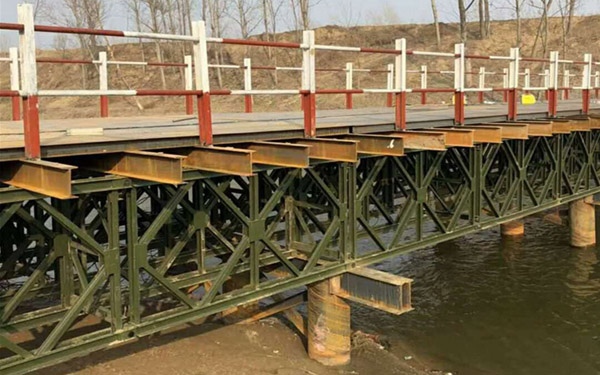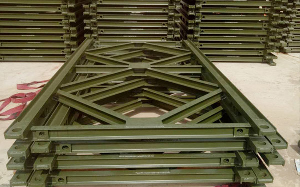 貝雷片具有結(jié)構(gòu)簡單、運(yùn)輸方便、架設(shè)快捷、載重量大、互換性好、適應(yīng)性強(qiáng)的特點(diǎn)。